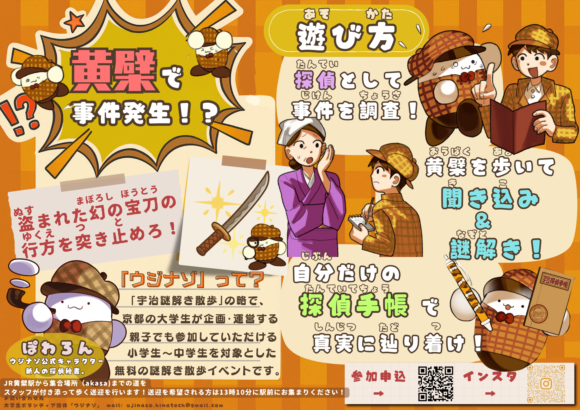 ウジナゾは、宇治のまちを歩きながら「ある事件の解決」に挑戦する体験型イベントです。